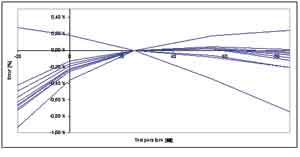 在固定溫度下獲得良好的測(cè)量精度并不困難,若在裝配電池組時(shí)已對(duì)BMU進(jìn)行了校準(zhǔn)便更容易。但實(shí)際情況中,電池組通常都會(huì)經(jīng)受各種溫度變化,所以溫度漂移是區(qū)分真正高性能BMU和普通BMU的關(guān)鍵參數(shù)。