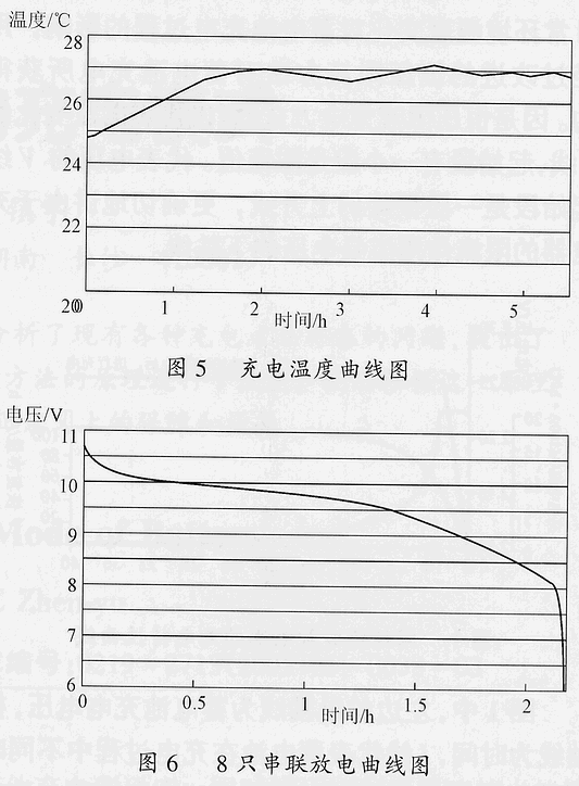 為進一步說明,特提供一組用我們設(shè)計的充電器,對市場上某品牌鎳氫電池(Ni-HM)5號1300mA•h,8只串聯(lián)充放電結(jié)果的打印曲線(環(huán)境溫度為25℃)如圖3~圖6所示。從這一組電池的充電電流接受曲線、充電電壓上升曲線、電池溫度變化曲線、0.5C恒流放電曲線可以看到,整個充電過程,電池溫升很小,不超過3~4℃,充滿電的時間,從標準的14~15h,縮短為3~4.5h。由于整個充電過程電池溫升很小,所以,不需要進行任何的人為干預(yù)。信息請登陸:輸配電設(shè)備網(wǎng)