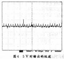 此開關(guān)電源5 V時輸出的紋波如圖4所示,峰值為15 mV,紋波不大于0.3%。該電源作為30 kW開關(guān)磁阻電機控制器電源,在勝利油田已得到實際應(yīng)用,工作可靠。