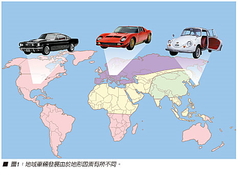 供需失衡的原因很多,最重要的關鍵,仍是兩個主要的問題:其一為能源危機,另一則是環(huán)境保護。自有汽車產業(yè)后,全球汽車的發(fā)展方向可簡單分為歐、日、美 三大趨勢,歐洲為汽車的發(fā)源地,在各種交雜的環(huán)境下,汽車的發(fā)展可小可大,既有高級房車、亦有小巧的轎車,由于工藝的原因,歐洲車在安全與能耗方面取得較優(yōu)異的平衡。(圖1)