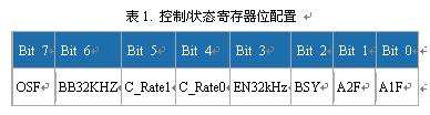 DS3232/DS3234在用戶可編程寄存器中提供了一個(gè)域,允許用戶延長(zhǎng)溫度更新的時(shí)間,從而降低平均電流損耗。兩款器件在控制/狀態(tài)寄存器中提供C_Rate位,用來(lái)設(shè)置四種不同的溫度更新周期。寄存器定義如表1所示。