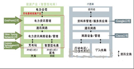 IT產(chǎn)業(yè)和智能電網(wǎng)能源產(chǎn)業(yè)在處理數(shù)據(jù)上展現(xiàn)了結(jié)構(gòu)上的相似性。美國新興公司希望將Google和Cisco在IT的成功模式沿用在充電基礎設施中。