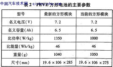 松下最新的方形電池采用新的電極材料,降低了內(nèi)阻和內(nèi)壓,使可靠性和壽命得到提高,其主要參數(shù)如表2所示,其技術(shù)特征: