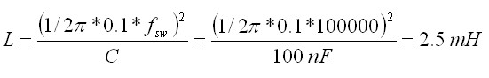 根據(jù)電磁干擾的屬性及濾波器元件的復(fù)雜特性,電容C1和C2起始選擇了100 nF電容。選擇的差分電感L1用于提供L-C濾波器頻率,約為開(kāi)關(guān)頻率的1/10。所使用的電感值是: