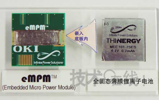 不僅是電容器及IC,就連電池也開始內置在印刷底板中。沖Printed Circuits試制出了內置薄型全固態(tài)鋰離子充電電池的4層印刷底板,并在2010年6月舉辦的安裝技術國際展會“JPCA Show 2010”上進行了參考展示。“已開始與多家設備廠商討論使用方法,希望最早于2011年啟動業(yè)務”(沖Printed Circuits技術本部商品開發(fā)部擔當部長中澤哲夫)。