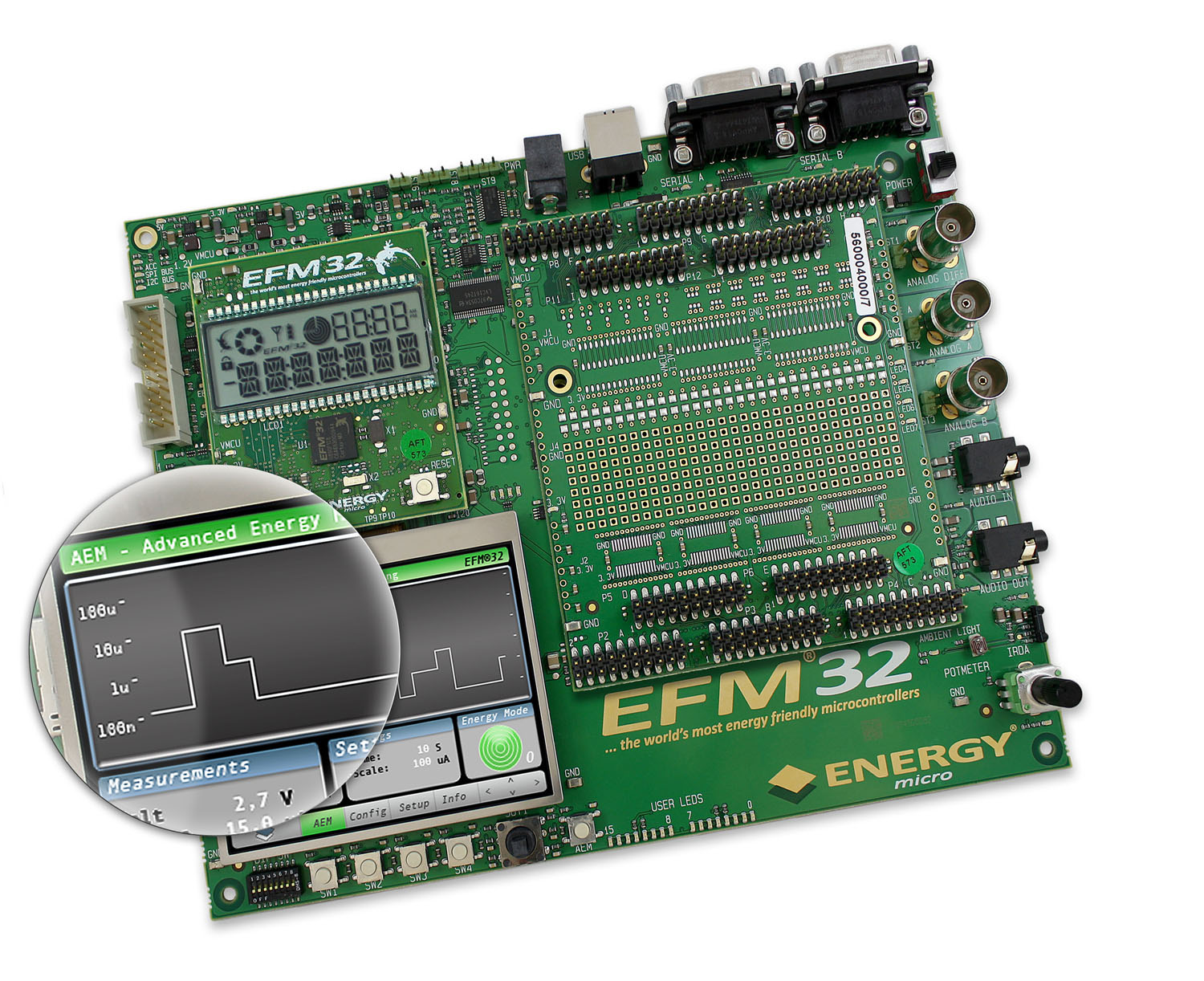 圖1:節(jié)能EFM32 Gecko微控制器的開發(fā)工具包有先進的能源監(jiān)控系統(tǒng)。