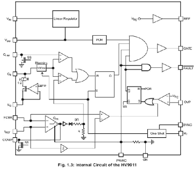 圖3HV9911內(nèi)部電路結(jié)構(gòu)