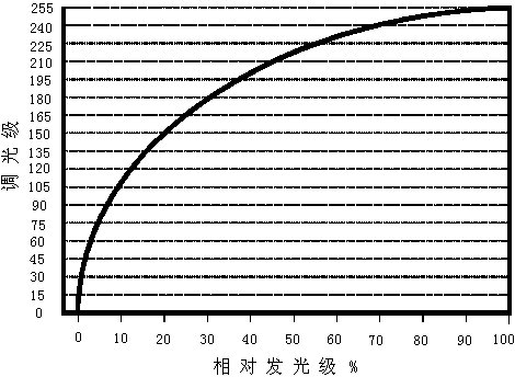 圖1DALI的256級(jí)對(duì)數(shù)調(diào)光曲線