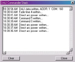 通過(guò)DALI命令軟件可由信息堆棧報(bào)告相應(yīng)的事件,圖5表示含有相關(guān)信息的堆棧界面。