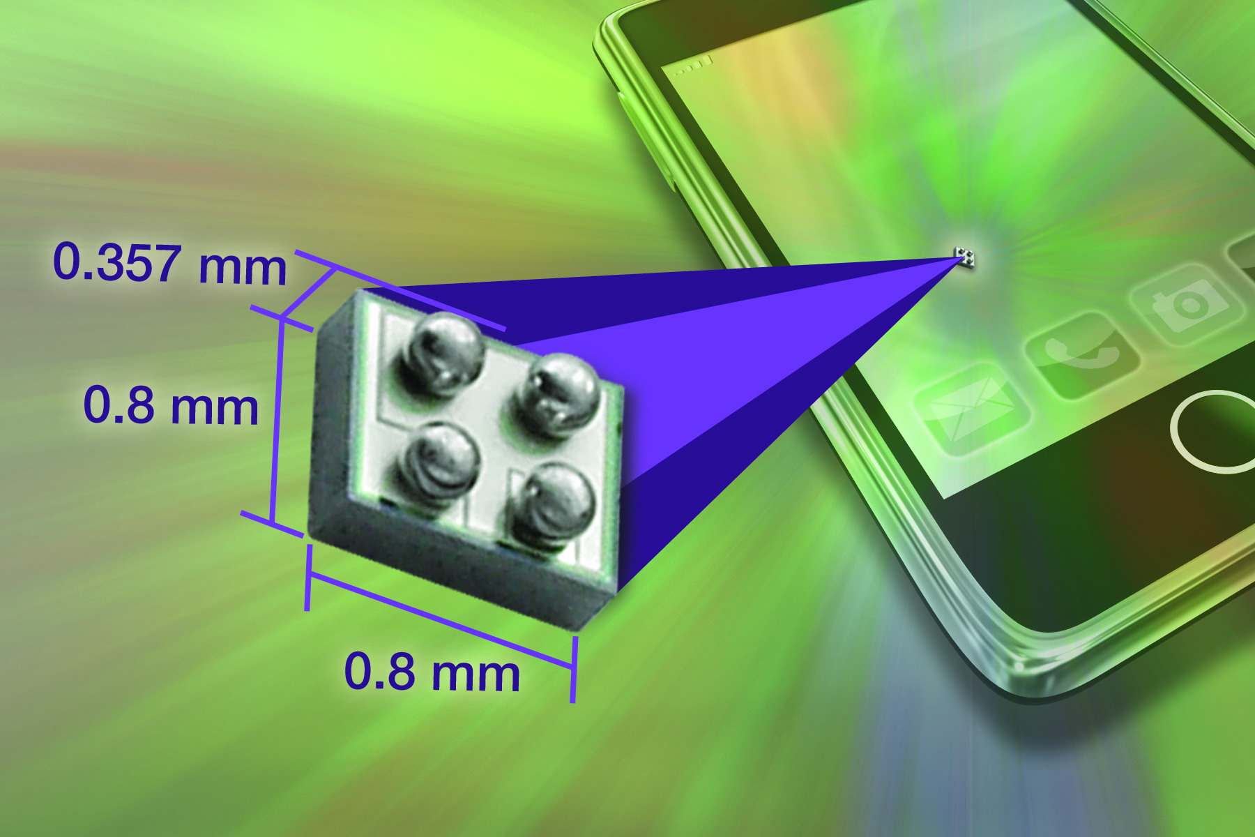 - 具有0.64mm2的超小外形和0.357mm的厚度