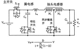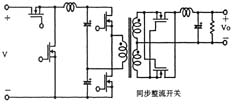另外,如圖3所示,在采用絕緣變壓器的場合,研究人員還提出了將有源鉗位電路嵌入推挽式轉(zhuǎn)換器中的方案,可在采用48V輸入和1.2V/70A輸出的條件下實現(xiàn)高達(dá)91%的效率。上面講到的幾種電路方式基本上都是一段式結(jié)構(gòu),最近,出于進(jìn)一步提高效率的考慮,人們正在加緊研發(fā)兩段式結(jié)構(gòu)的轉(zhuǎn)換器。就普通的轉(zhuǎn)換器而言,采用兩段式結(jié)構(gòu)將導(dǎo)致效率下降是人所共知的常識,然而,在低電壓大電流轉(zhuǎn)換器中,對輸出進(jìn)行同步整流是很普遍的做法,因此,如何實現(xiàn)同步整流操作的高效化便成為了關(guān)鍵所在。