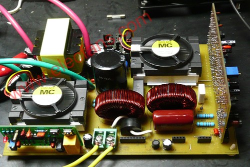 讓機器空載工作一段時間,如果沒有出現(xiàn)意外,可以把高壓保險絲換成2A的,慢慢加大負載,一般是100W,200W,400W,一步一步地加,每加一點讓機器老化一段時間,同時要密切注意前級功率管的溫升,如果溫度過高,要查出原因。