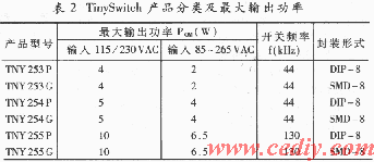 (1)TinySwitch有DIP-8、SMD-8兩種封裝形式、6種型號(hào)。產(chǎn)品分類見表2。