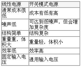表1線性與開關(guān)電源對比