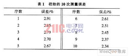以200W的小型離網(wǎng)光伏系統(tǒng)為例,額定電壓24V,最大電流6.18A,蓄電池200Ah。設(shè)計(jì)正常放電時(shí)間為2~3d,0~6.18A的電流按比例轉(zhuǎn)換為0~5V的電壓,由2只電阻構(gòu)成的衰減器,輸出電壓放大比例由電阻R1和R2的比值決定,設(shè)定U/U轉(zhuǎn)換比例為5/24,則R7=10kΩ,R6+Rp2=48kΩ。根據(jù)電量計(jì)算公式Q=UIT,實(shí)驗(yàn)時(shí)間為中午12時(shí)至下午2時(shí),從顯示電量開(kāi)始,每隔3min記錄一次實(shí)際功率和監(jiān)控系統(tǒng)所顯示的數(shù)據(jù),各次誤差均小于3%,表l給出初始的10次測(cè)量誤差情況,隨電量逐漸增大,誤差變化范圍逐漸縮小。