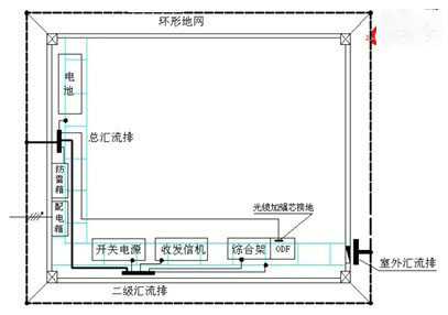 根據(jù)‘郵標’規(guī)定“采用環(huán)形等電位連接時,應在機房內(nèi)沿走線架和墻壁設置環(huán)形接地匯集線,環(huán)形接地匯集線應多點就近與地網(wǎng)連通,站內(nèi)設備由環(huán)形匯集線就近接地。”