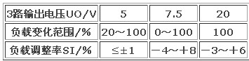 2)多路輸出,穩(wěn)壓性能好,在最壞的情況下,各路輸出的負載調(diào)整率指標(biāo)見表1,