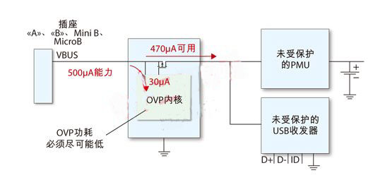 當(dāng)處在暫停模式時(shí),與Vbus線路串連的OVP器件將呈現(xiàn)最低的電流消耗,并由收發(fā)器啟動(dòng)序列喚醒過(guò)程(圖2)。
