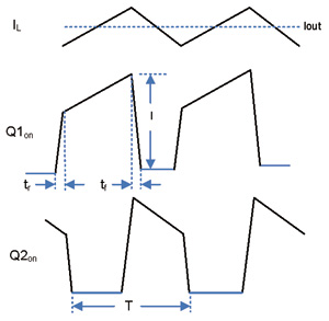 此概念可以推廣到所有利用梯形波形進行電路設(shè)計的場合,不過本文僅討論電源設(shè)計。參考圖4中的交流模型,研究其回路電流流動情況:起點為輸入電容器,然后在Q1導(dǎo)通期間流向Q1,再通過L1進入輸出電容器,最后返回輸入電容器中。