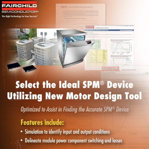 飛兆半導體提供完整的SPM封裝產品系列,推動高能效變頻馬達的發(fā)展,并實現高能效的設計。運動控制設計工具 可以配合和支持SPM系列的所有器件,為運動控制設計工程師提供飛兆半導體MotiON-SPM封裝的功耗和溫升的有效計算方法。