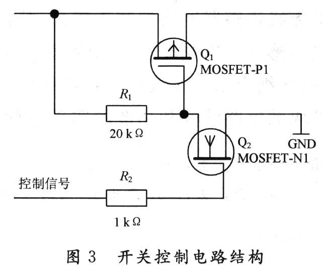 該電源系統(tǒng)各支路的開關(guān)控制主要由場效應(yīng)管構(gòu)成的開關(guān)電路來實現(xiàn)。實現(xiàn)該功能的電路結(jié)構(gòu)如圖3所示。
