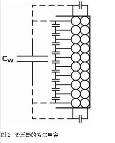 這些電容包括繞組間電容和層間電容,它們可以一起轉(zhuǎn)型為單一的電容CW,也是硬開關(guān)轉(zhuǎn)換器開關(guān)損耗的主要來(lái)源。