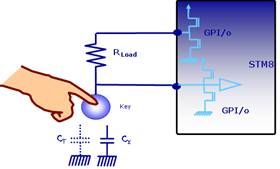 圖1 STM8S電容式觸摸按鍵的工作原理