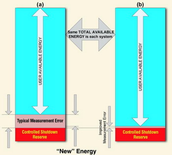 受控關斷必須要考慮測量誤差,以確保其在任何條件下都能實現。對測量總可用電量的準確度的提高將會直接增加用戶的可用電量。因此,充分發(fā)掘能源的潛力將會獲得更長的運行時間(見圖2)。