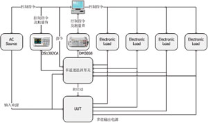 典型的AC/DC電源測(cè)試系統(tǒng)包含了程控交流電源、程控電子負(fù)載、高精度數(shù)字萬用表、數(shù)字示波器、多通道程控開關(guān)以及工控機(jī)和測(cè)試軟件。
