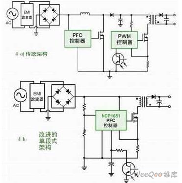 圖2:需要PFC的LED驅(qū)動(dòng)應(yīng)用中不同架構(gòu)對(duì)比。
