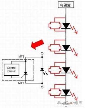 在這方面,可以采用安森美半導(dǎo)體的NUD4700 LED分流保護(hù)解決方案。圖5是這種分流保護(hù)解決方案的應(yīng)用及原理示意圖。