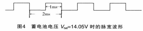 當蓄電池的電壓Vbat=14.05V時, 其脈寬波形如圖4所示。