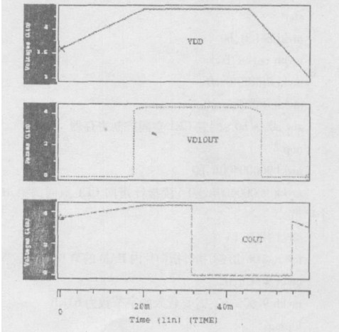 同時,為了保證充電控制管MC在過充電狀態(tài)下有效關(guān)斷,利用電平轉(zhuǎn)換電路使輸出COUT端為邏輯電路輸出信號的四級反相,從而使COUT端低電平由VSS降至V-。