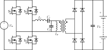與充電模式2類似,充電變換器可以直接采用全橋或帶諧振的全橋變換器。但是,由于充電模式3功率級更高,與諧振式全橋變換器相比,一般的全橋變換器必然會對應(yīng)很高的峰值電流。因此,應(yīng)當(dāng)考慮采用ZVS或ZCS諧振全橋拓?fù)鋪碛行Ы档蛽p耗。