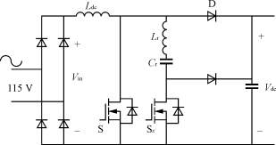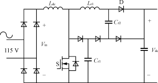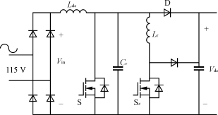 對于1.5kW功率等級,輸入電流有效值為15A,平均開關(guān)電流是13A,峰值電流為22A,需要電流定額至少為30A的開關(guān)器件。盡管這個方案提供了比較簡單的單級功率變換,但也存在一些缺陷,如半導(dǎo)體器件承受的電壓應(yīng)力較高、輸出電壓調(diào)節(jié)性能差,輸出電流紋波大。