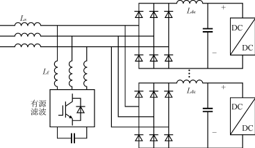 有源濾波器定額約為充電站額定功率定額的20%。在整流端一般采用直流側(cè)電感來提高整流器的功率因數(shù),可以選用串聯(lián)或并聯(lián)方式的有源濾波方案。