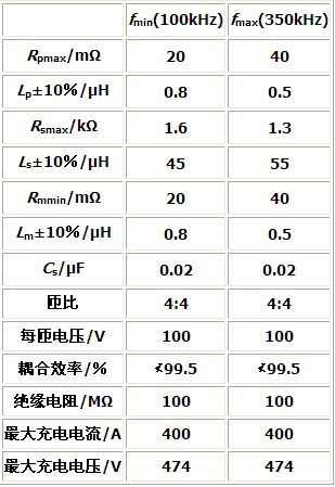 根據(jù)SAE J-1773標(biāo)準(zhǔn)給出的感應(yīng)耦合器等效電路,連接電纜和電池負(fù)載的特性,可以得出感應(yīng)耦合充電變換器應(yīng)當(dāng)滿足以下設(shè)計標(biāo)準(zhǔn)。