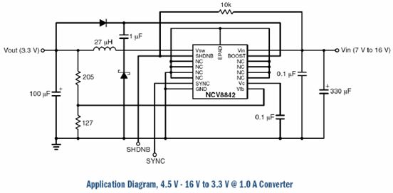 圖6: 基于NCV8842轉(zhuǎn)換器的應(yīng)用電路[page]