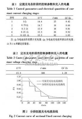 增大充電電流,電池極板上單位時間內(nèi)恢復(fù)的活性物質(zhì)增多,充電時間就可縮短,但過大的充電電流會損害電池。電池可接受的充電電流是有限的,且會隨充電時間呈指數(shù)規(guī)律下降。在電池充電過程中,充電電流曲線在該指數(shù)函數(shù)曲線以上時會導(dǎo)致電池電解液發(fā)生析氣反應(yīng)(過充電) ,反之則不能有效縮短充電時間。理想化的電池快速充電過程是充電電流始終保持在電池充電可接受電流的極限值,即充電電流曲線與該電池的充電可接受電流曲線相重合。本文選擇容易實(shí)現(xiàn)的分段恒流充電方法,其關(guān)鍵是要確定適當(dāng)?shù)碾A段恒流充電終止判斷標(biāo)準(zhǔn)、恒流充電分段數(shù)和各階段恒流充電電流值。