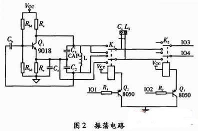 采用LC振蕩器的振蕩原理,LC振蕩器選擇L或是C參數(shù)為固定值。通過LC的組合,振蕩器起振,當(dāng)測(cè)量電容時(shí)電感固定,測(cè)量電感時(shí)電容固定。通過LC振蕩器的頻率計(jì)算公式