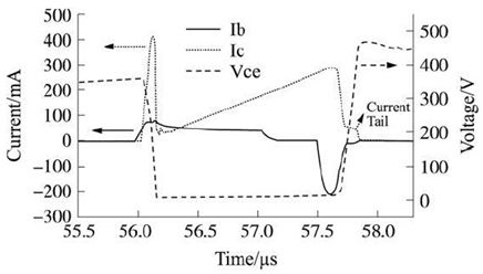 在開關(guān)晶體管關(guān)斷時, 集電極電流不能馬上降為0, 而集電極電壓已經(jīng)從Vcesat開始上升, 在開關(guān)晶體管上產(chǎn)生電壓電流交替現(xiàn)象, 從而產(chǎn)生關(guān)斷損耗。