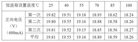 確定正向電壓與結(jié)溫的關(guān)系的試驗(yàn)步驟為:1)將光源置入恒溫箱中;2)設(shè)置恒溫箱的溫度;3)待恒溫箱內(nèi)溫度充分平衡穩(wěn)定后,在光源兩端接入恒流源;4)迅速測(cè)量光源的正向電壓并記錄;5)重復(fù)上述步驟1)~(4),恒溫箱溫度由低到高,測(cè)得多點(diǎn)數(shù)據(jù)。