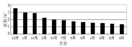 圖8 各月太陽能電池板對應(yīng)面積排列柱形圖