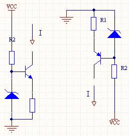 但是這會(huì)增加成本,因?yàn)楹懔鞫O管比較貴。另一個(gè)簡(jiǎn)單的方法,就是用一個(gè)晶體三極管來加大電流。圖13表明了采用NPN和PNP三極管進(jìn)行電流放大的電原理圖。