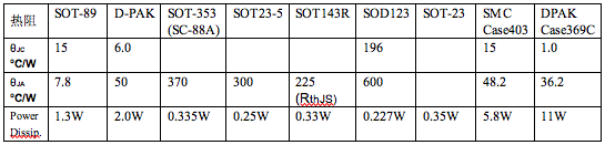 由表中可見,On-semi公司的NSI50350ADT4G所采用的D-PAK具有最小的熱阻,其耗散功率高達(dá)11W。不過如果整個(gè)系統(tǒng)設(shè)計(jì)于這樣高的耗散功率也說明其效率不高,是需要避免的。