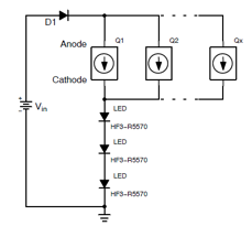 圖12. 多個(gè)恒流二極管并聯(lián)以增大電流