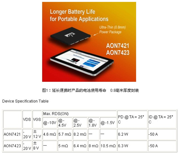 新的產(chǎn)品上應用了AOS的AlphaMOS專利技術(shù)。這些技術(shù)的好處在于它可以延長電池的使用壽命,還可以使設計變的更簡單緊湊,適用于便攜式產(chǎn)品,例如:平板電腦、智能手機,電子書、筆記本電腦、數(shù)碼相機及便攜式音樂播放器。