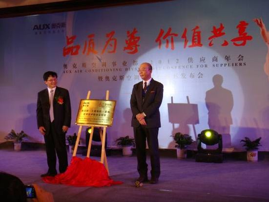 2011年11月17日,奧克斯-三菱電機-菱電變頻技術(shù)聯(lián)合實驗室揭牌儀式在寧波開元名都酒店隆重舉行,以“品質(zhì)為尊,價值共享”為主題的奧克斯供應商大會也同期同地舉行。三菱電機更是榮獲了奧克斯空調(diào)“最佳戰(zhàn)略合作伙伴”以及“技術(shù)創(chuàng)新獎”兩項殊榮。