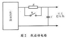 開關(guān)穩(wěn)壓電源的電路比較復(fù)雜,基本上可以分為小功率的控制部分和大功率的開關(guān)部分。開關(guān)晶體管則屬大功率,為保護(hù)開關(guān)晶體管在開啟或關(guān)斷電源時(shí)的安全,必須先讓調(diào)制器、放大器等小功率的控制電路工作。為此,要保證正確的開機(jī)程序。開關(guān)穩(wěn)壓器的輸入端一般接有小電感、大電容的輸入濾波器。在開機(jī)瞬間,濾波電容器會(huì)流過很大的浪涌電流,這個(gè)浪涌電流可以為正常輸入電流的數(shù)倍。這樣大的浪涌電流會(huì)使普通電源開關(guān)的觸點(diǎn)或繼電器的觸點(diǎn)熔化,并使輸入保險(xiǎn)絲熔斷。另外,浪涌電流也會(huì)損害電容器,使之壽命縮短,過早損壞。為此,開機(jī)時(shí)應(yīng)該接入一個(gè)限流電阻,通過這個(gè)限流電阻來對(duì)電容器充電。為了不使該限流電阻消耗過多的功率,以致影響開關(guān)穩(wěn)壓器的正常工作,而在開機(jī)暫態(tài)過程結(jié)束后,用一個(gè)繼電器自動(dòng)短接它,使直流電源直接對(duì)開關(guān)穩(wěn)壓器供電,如圖2所示。這種電路稱之謂開關(guān)穩(wěn)壓器的“軟啟動(dòng)”電路。