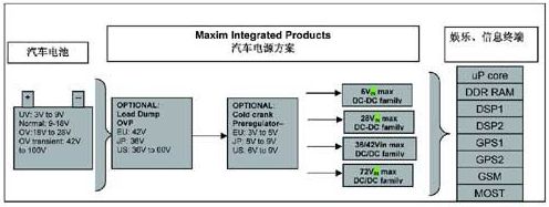 Maxim的汽車電源IC克服了許多電源管理問題,能夠提供獨(dú)特的高性能解決方案。電源產(chǎn)品包括過壓保護(hù)、微處理器監(jiān)控、開關(guān)轉(zhuǎn)換器和線性穩(wěn)壓器等高度集成的多功能PMIC (如圖4所示)。電源IC符合汽車級(jí)質(zhì)量認(rèn)證和生產(chǎn)要求,例如:AECQ100認(rèn)證、DFMEA、不同的溫度等級(jí)、特殊的封裝要求。